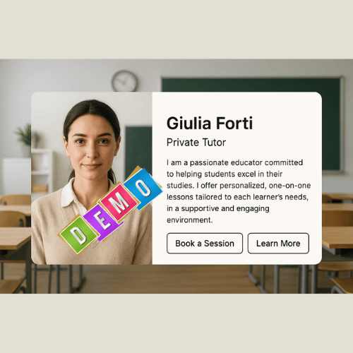 Con passione e dedizione, Giulia Forti accompagna studenti di ogni età in percorsi di apprendimento personalizzati. Dalle materie scolastiche al potenziamento delle abilità trasversali, offre lezioni private mirate, supporto nei compiti e consulenze didattiche online e in presenza. Il suo metodo si basa sull’ascolto, sulla chiarezza e sul rispetto dei tempi di ciascuno, per trasformare lo studio in una scoperta consapevole.